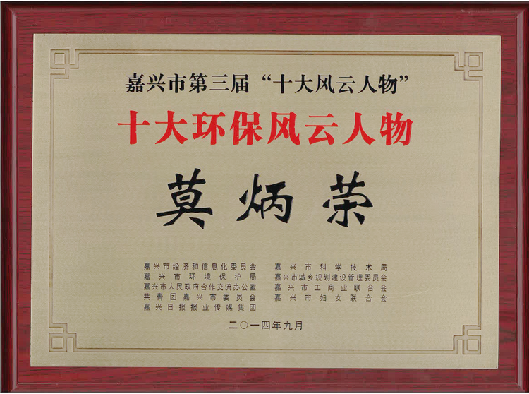 9月18日,在嘉興市第三屆“十大風(fēng)云人物”頒獎(jiǎng)典禮上,公司董事長(zhǎng)兼總經(jīng)理莫炳榮同時(shí)榮獲“嘉興市十大工業(yè)轉(zhuǎn)型發(fā)展風(fēng)云人物”、“嘉興市十大環(huán)保風(fēng)云人物”榮譽(yù)稱號(hào)。